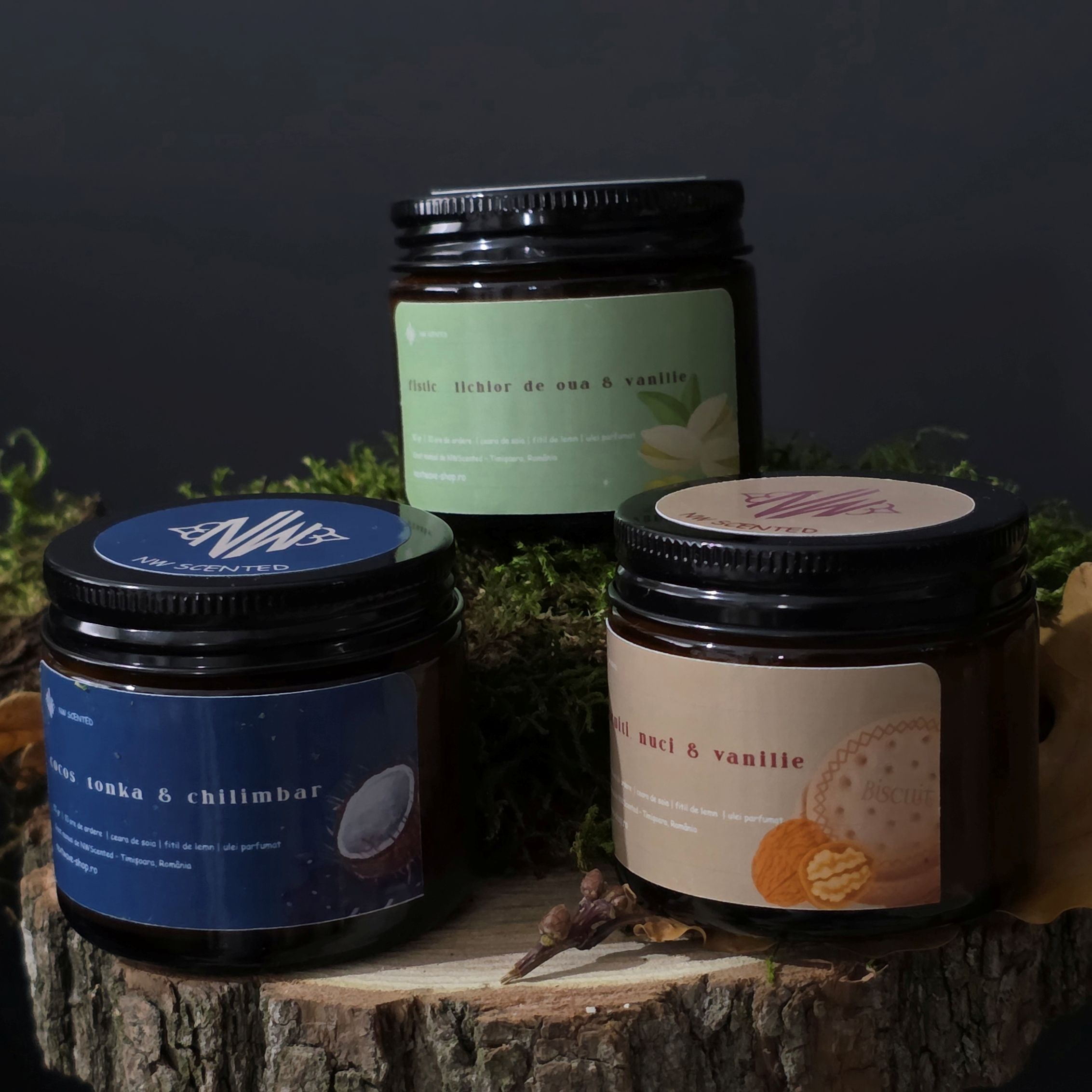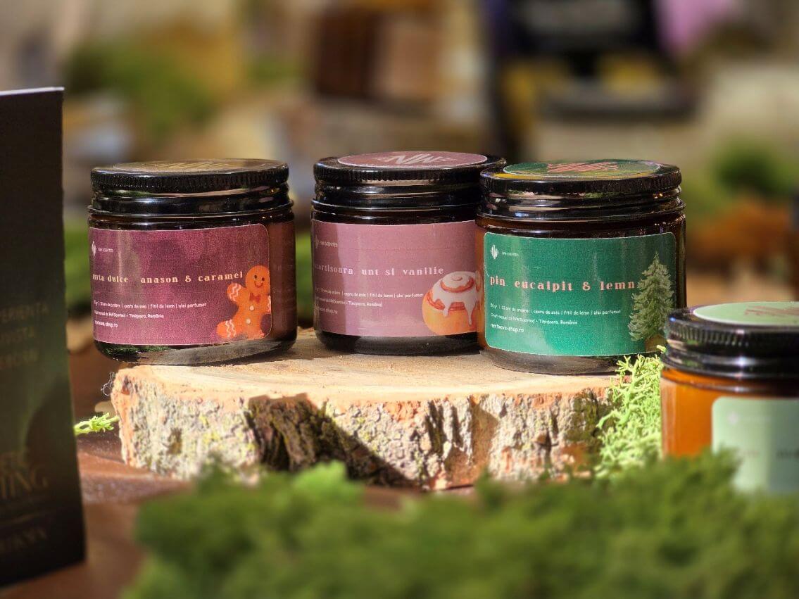 Colecția de Crăciun este o invitație de a te reconecta la magie. Fiecare lumânare este turnată manual din 50 g x3 de ceară naturală de soia, cu fitil de lemn tip tub care trosnește ușor, aducând în casă sunetul blând al focului și mirosul autentic al sărbătorilor.